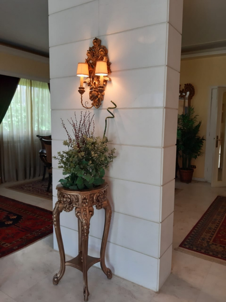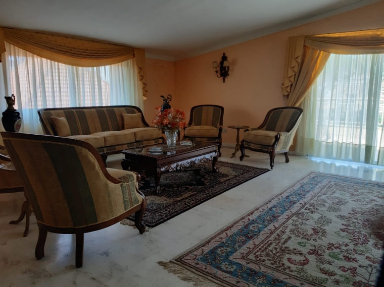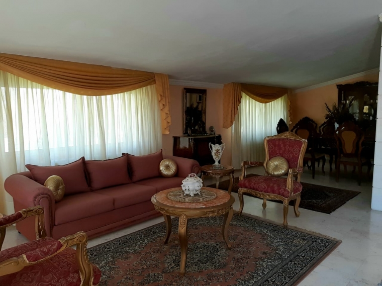 Each appartment area (First floor, second floor, and roof) is 320 m2 having two salon, dining area, living room, three bedrooms (one master bedroom, two bedrooms with common bathroom), four bathrooms, helper's room, and six balconies.